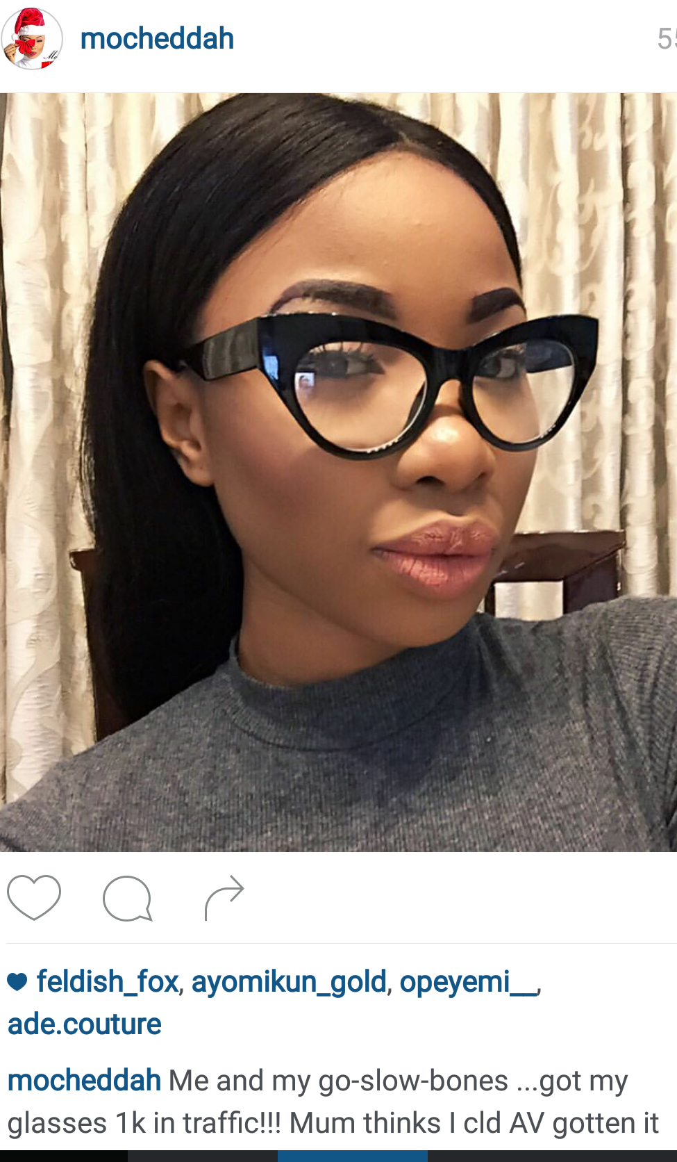 Petit singer Mocheeda is one of the most open celebrities around following her unbelievable revelation. The entertainer made a shocking confession that she buys her expensive looking sunglasses for only 1,000 in Lagos Traffic! Can you believe that? She also added that her mum told her it could have even been cheaper. Now this is what we are talking about! You don’t need to break a bank to impress the world because you are a celeb plus sometimes it’s all about poise and carriage! Rock on ‘Mo Diva’.
