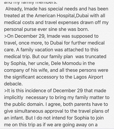 Burble however burst when Sophie learnt that Davido and his family were travelling with Imade for vacation without her consent, she reportedly contacted the musician and requested to go on the trip so she can take care of her baby but Davido allegedly vehemently refused.