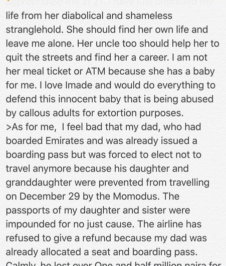 Fast forward to September 2015, a family war kicked off as Davido and his family allegedly took over the custody of Imade after him and his baby mama had a serious fight though he agreed to allow her see the baby whenever she wants. He also reportedly promised to continue paying a certain amount for her upkeep and house rent.