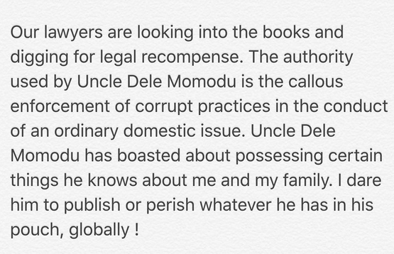This we further gathered left Sophie with no choice but to involve her uncle Dele Momodu and wife who already had pending issues with the Adelekes thus the reason for the whole drama on social media.